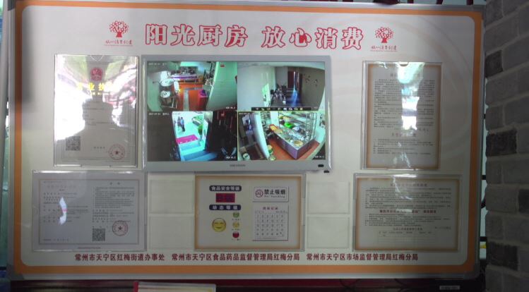 天寧區(qū)現(xiàn)“陽光廚房”, 讓后廚不再神秘。常州餐飲監(jiān)管創(chuàng)新模式“一點(diǎn)兩站”結(jié)合云平臺(tái)、微信端、二維碼等諸多信息化手段,用互聯(lián)網(wǎng)+的監(jiān)管理念率先在天寧區(qū)紅梅竹林南路餐飲一條街試推行。